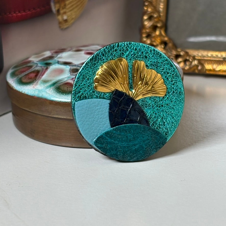 Klein, aber voller Wirkung. Diese handgefertigte Brosche aus recyceltem Leder ist ein Einzelstück. Ob als Blickfang am Revers, als Akzent auf dem Lieblingspulli oder als feines Detail am Schal, sie verleiht jedem Outfit einen individuellen Twist. Gefertigt in einem kleinen Atelier in Frankreich, bringt sie Farbe in deinen Alltag.